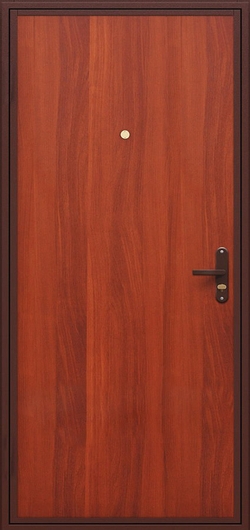 Основа конструкции двери арт.КД-129 сформирована из металла толщиной 1,8 мм, дополненного внутренним утеплителем и шумоизоляцией. Внутри полотно заполнено минеральной плитой и пенополистиролом. Модель имеет все необходимые элементы для безопасной и удобной эксплуатации, включая замки, ручки и глазок.