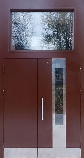 Двустворчатая тамбурная дверь с остекленной фрамугой и порошковым напылением КД-582