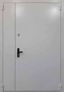 Полуторная стальная термодверь с синими панелями МДФ RAL и ручкой с LED-подсветкой