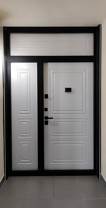 - установлена надежная фурнитура – трехригельный замок, усиленные петли диаметром 22 мм, глазок с обзором 180 градусов.